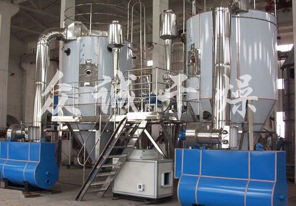 產(chǎn)品介紹  噴霧干燥是液體工藝成形和干燥工業(yè)中廣泛應(yīng)用的工藝。適用于從溶液、乳液、懸浮液和糊狀液體原料中生成粉狀、顆粒狀固體產(chǎn)品。因此,當(dāng)成品的顆粒大小分布、殘留水份含量、堆積密度和顆粒形狀必須符合精確的標(biāo)準(zhǔn)時(shí),噴霧干燥是一道十分理想的工藝。工作原理   空氣經(jīng)過濾和加熱,進(jìn)入干燥器頂部空氣分配器,熱空氣呈螺旋狀均勻地進(jìn)入干燥室。料液經(jīng)塔體頂部的高速離心霧化器,(旋轉(zhuǎn))噴霧成極細(xì)微的霧狀液珠,與熱空氣并流接觸在極短的時(shí)間內(nèi)可干燥為成品。成品連續(xù)地由干燥塔底部和旋風(fēng)分離器中輸出,廢氣由風(fēng)機(jī)排空…